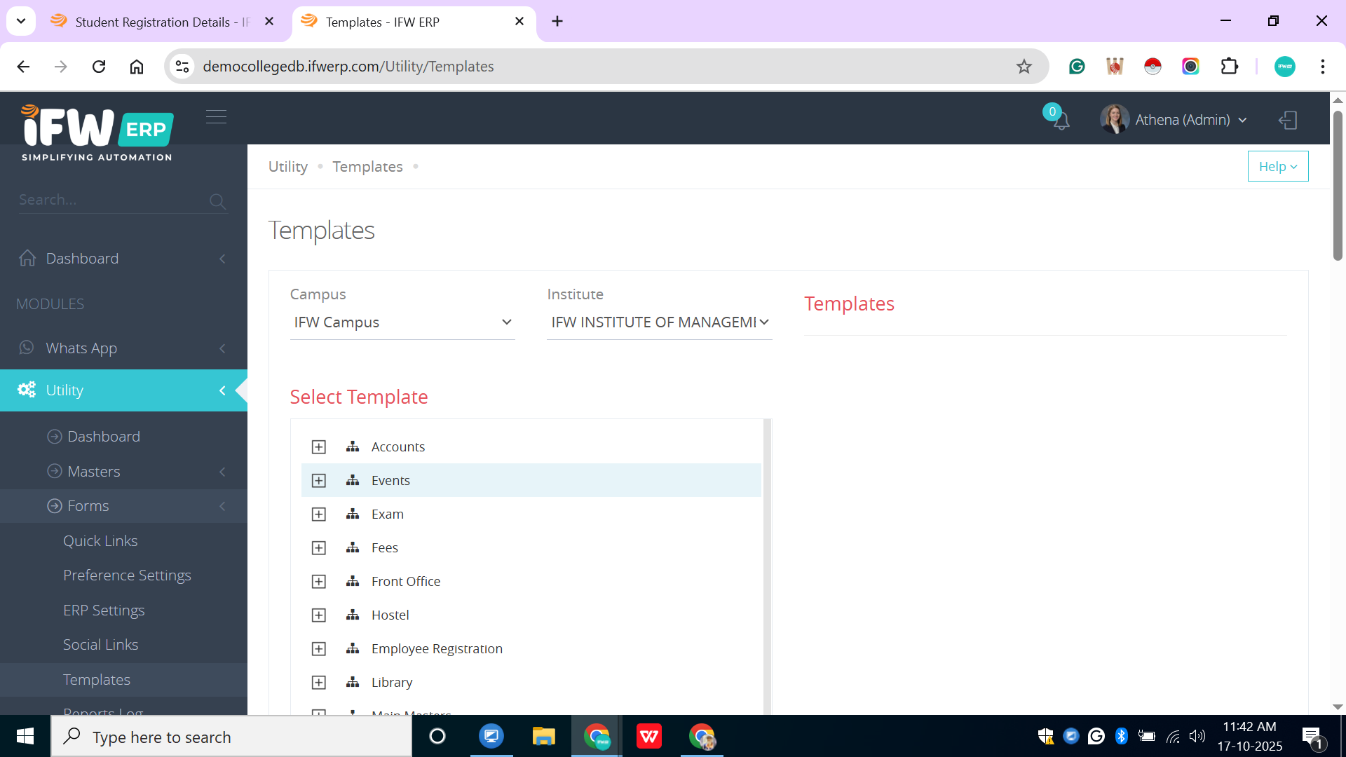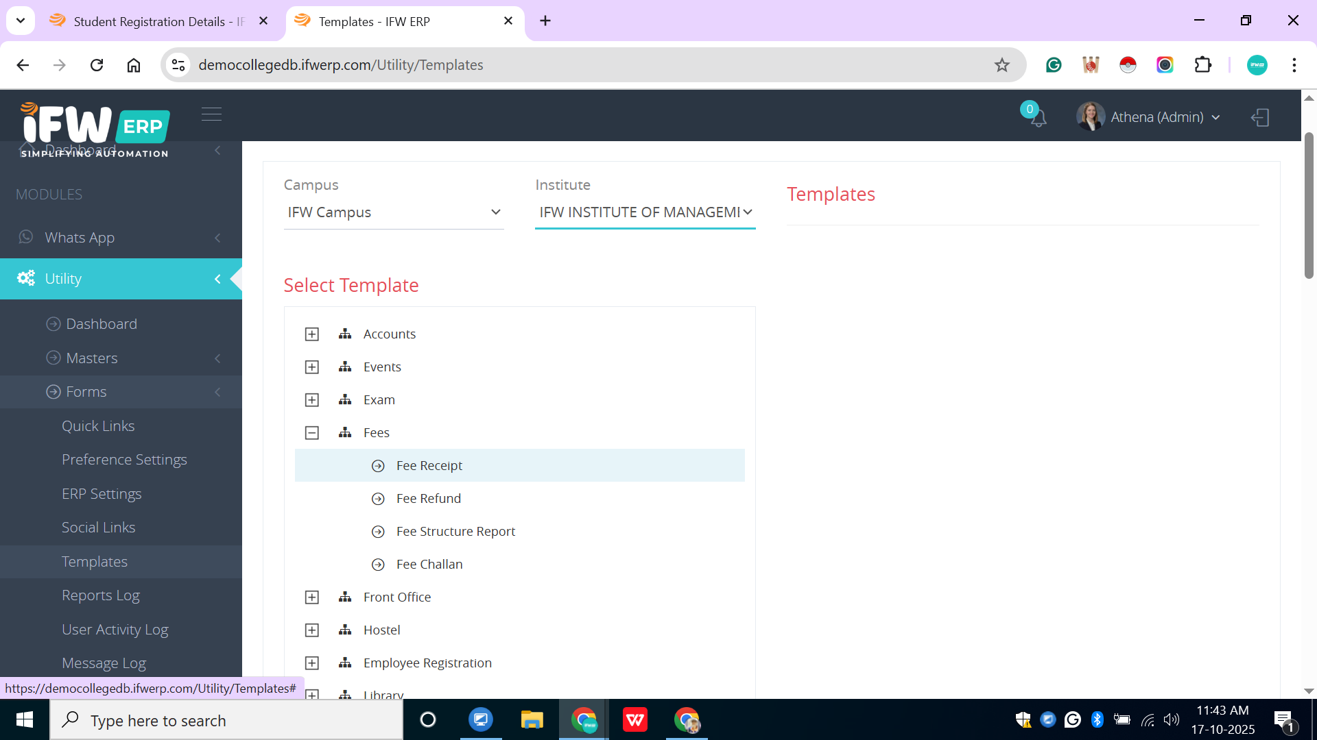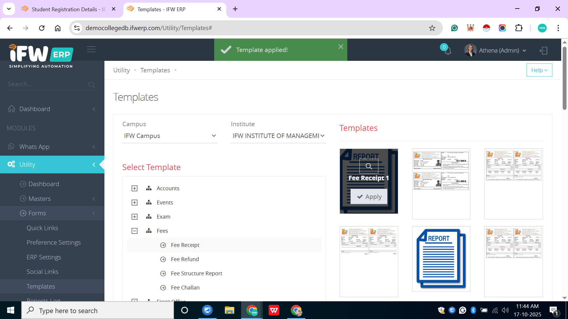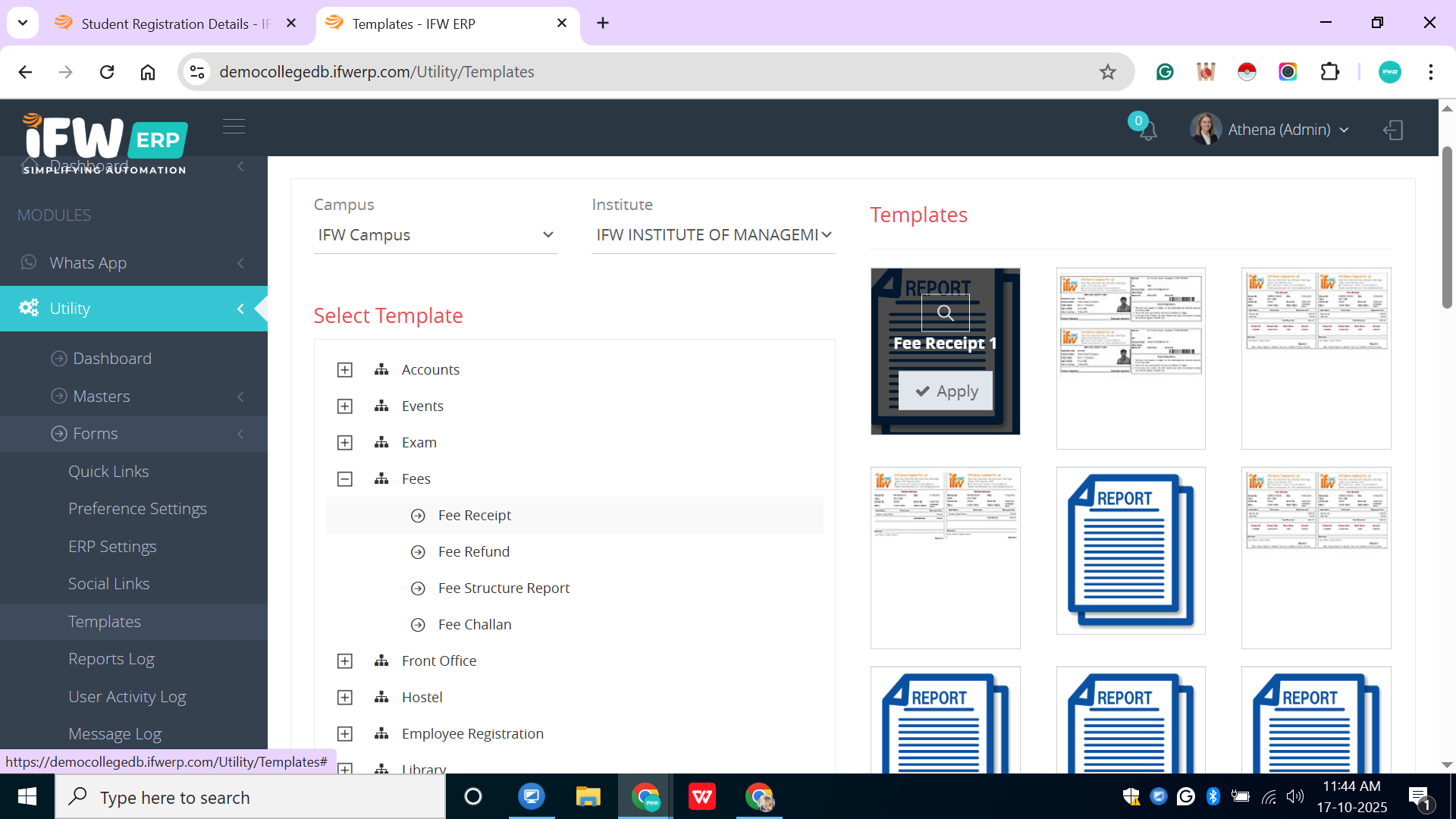 Users can set the print template according to their institute on the IFW ERP forms, where the print button feature is available. Follow these steps to do so.